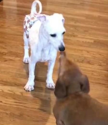几天后,乔丹开始变了。它和新家的其他狗狗混熟了,慢慢学会观察。可能是其他狗狗的“示范”,让乔丹发现,躺下来睡觉也没啥可怕的。第一次,它试着把身子放下来,趴在床上。梅莉萨看着,激动得想鼓掌。她说:“那一刻,我觉得它终于知道自己到家了。”