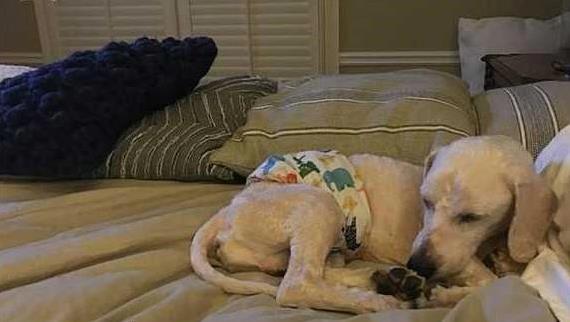 乔丹没躺下,只是把头轻轻靠在床边。然后,站着站着,头垂下去了,身体还左右晃。梅莉萨愣了足足一分钟,才反应过来:这狗狗竟然站着睡着了!她眼泪刷地就下来了。她心想,乔丹以前得过得多苦啊,连趴着睡觉都不会。